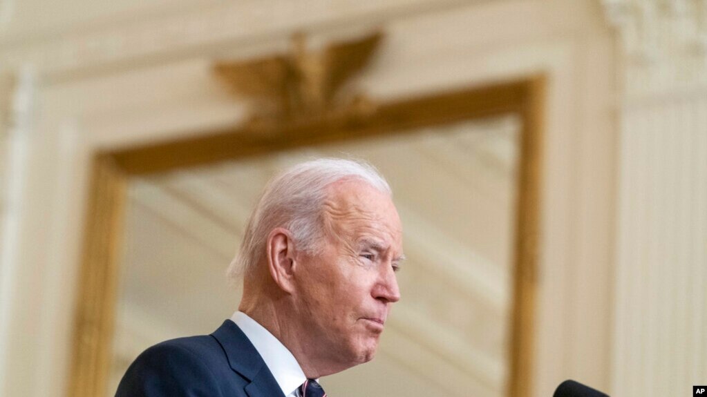 Biden menyatakan bahwa pergerakan pasukan Rusia ke wilayah Ukraina timur adalah “pelanggaran terang-terangan terhadap hukum internasional.”