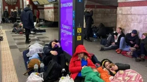 Warga berlindung di stasiun kereta bawah tanah
