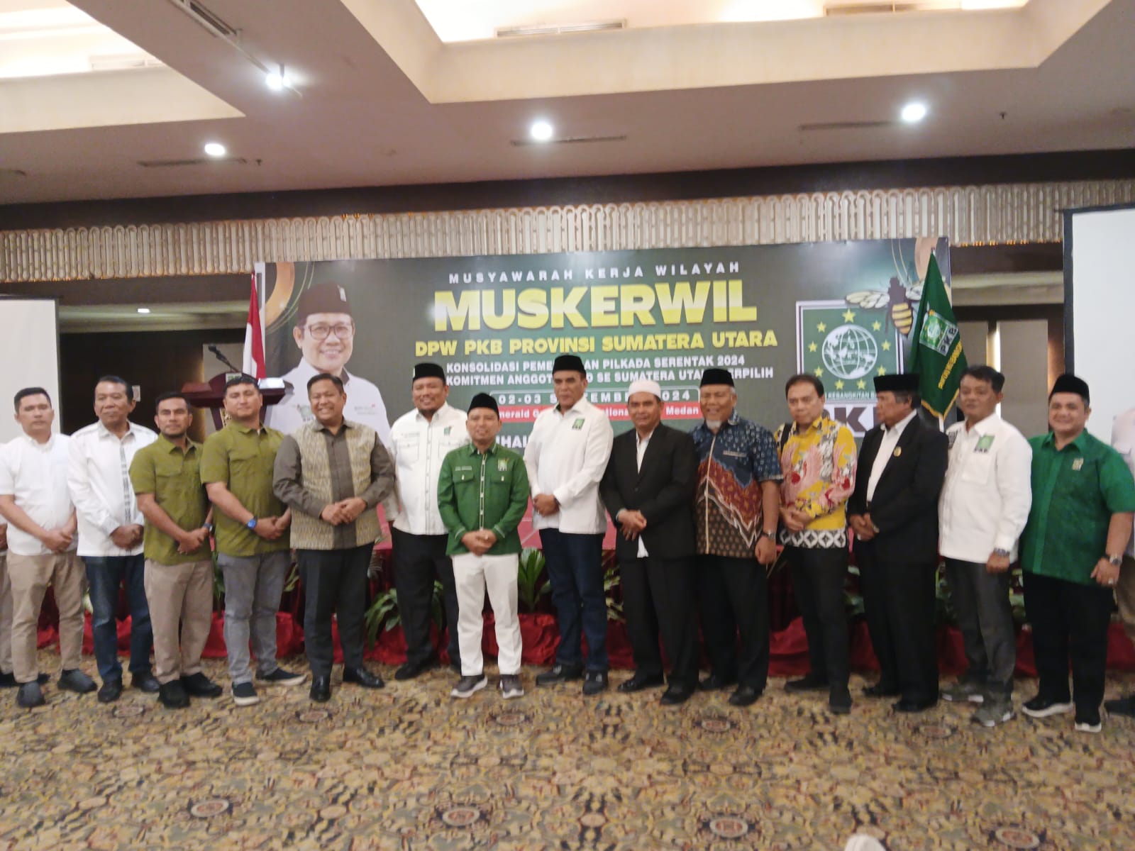 Calon Bupati dan Wakil Bupati Dairi priode 2024 sd 2029 yakni Eddy Keleng Ate Berutu dan Depriwanto Sitohang hadiri Musyawarah Kerja Wilayah ( Mukerwil ) di Jajaran Pengurus DPW PKB dan DPC PKB se Sumut yang dibuka secara resmi oleh Ketua Umum DPP PKB H. Muhaimin Iskandar diwakili Zainul Munasichi di Hotel Emerald Garden, Senin (02/09/2024)